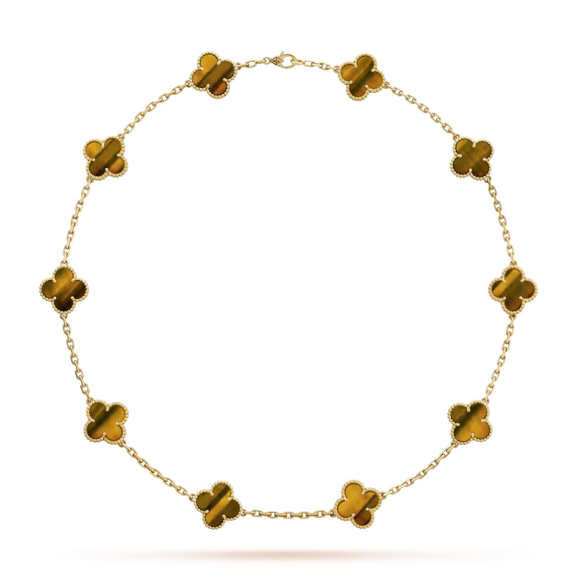 Vintage Alhambra necklace, 10 motifs, 18K yellow gold, tiger??s eye.